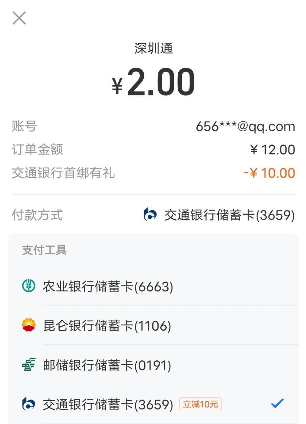 交通银行支付宝10元