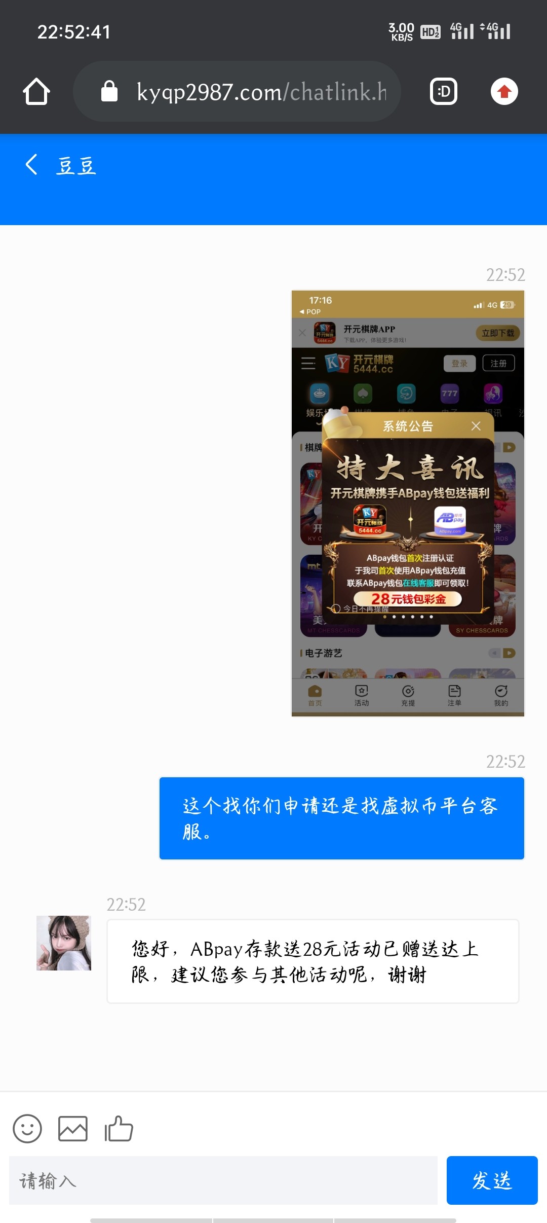 联系AB客服申请28,自己充到平台!