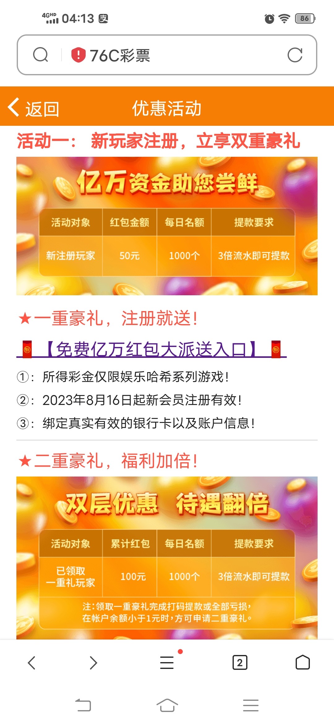 活动!8月16号新注册的用户,免费领取50红包,每天限制人数1000