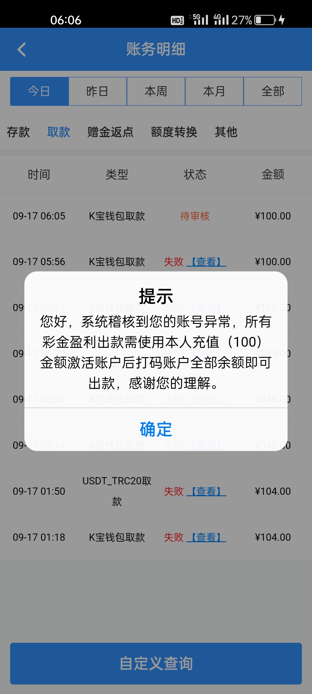 威尼斯人 910.cc有在玩的老哥千万别玩了,我六月份注册的 期间充了一千多块 今天登陆上去有个签到活动打到了一百 不给提现,让充值一百 充了又说活跃度不够让接着充值 ,无论跟客服说什么只会重复一句话说活跃度不够还需要充值这跟刷单诈骗有什么区别,连本金都不给提。纯纯的诈骗台,今天能因为一百块黑我,明天镰刀就能割向老玩家