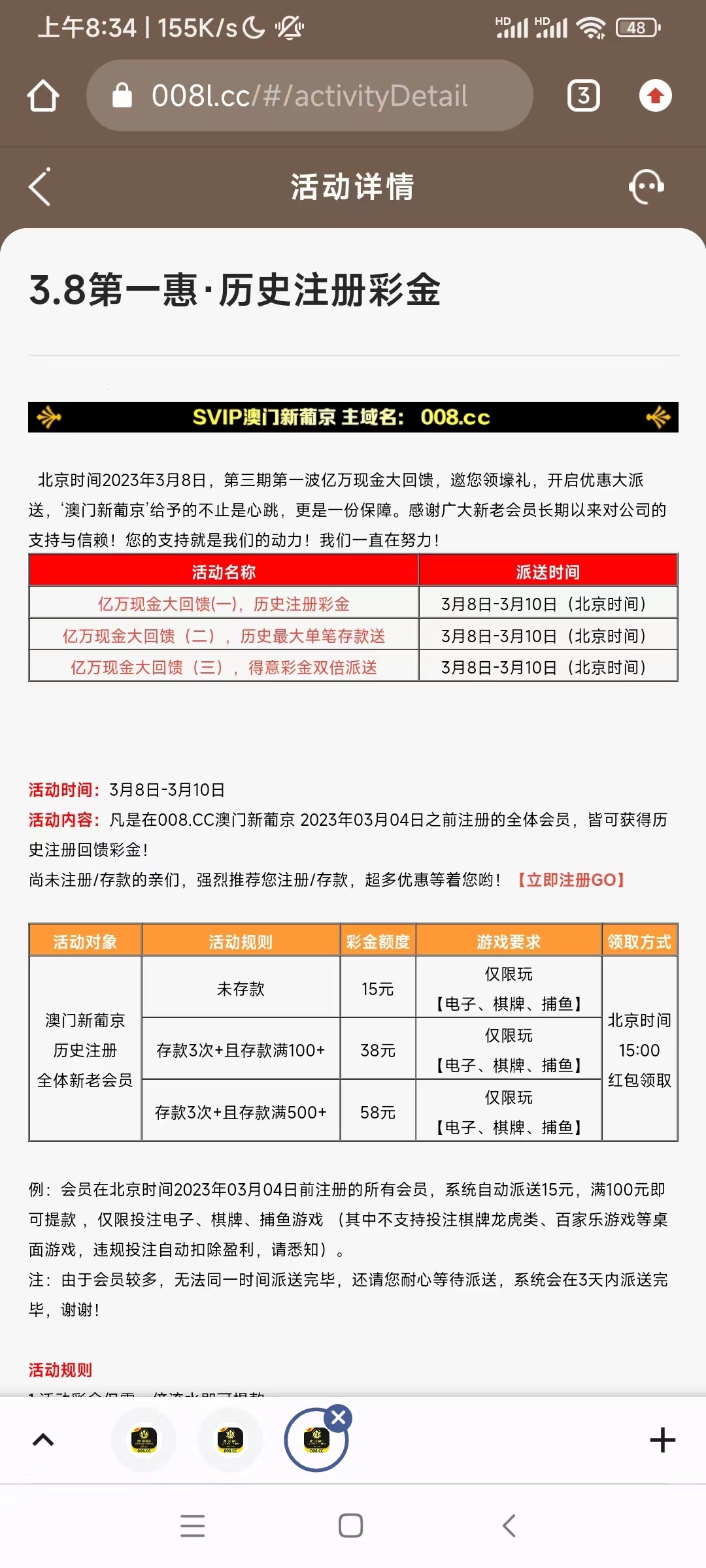 活动:3.4号之前注册的上号最低回馈15
