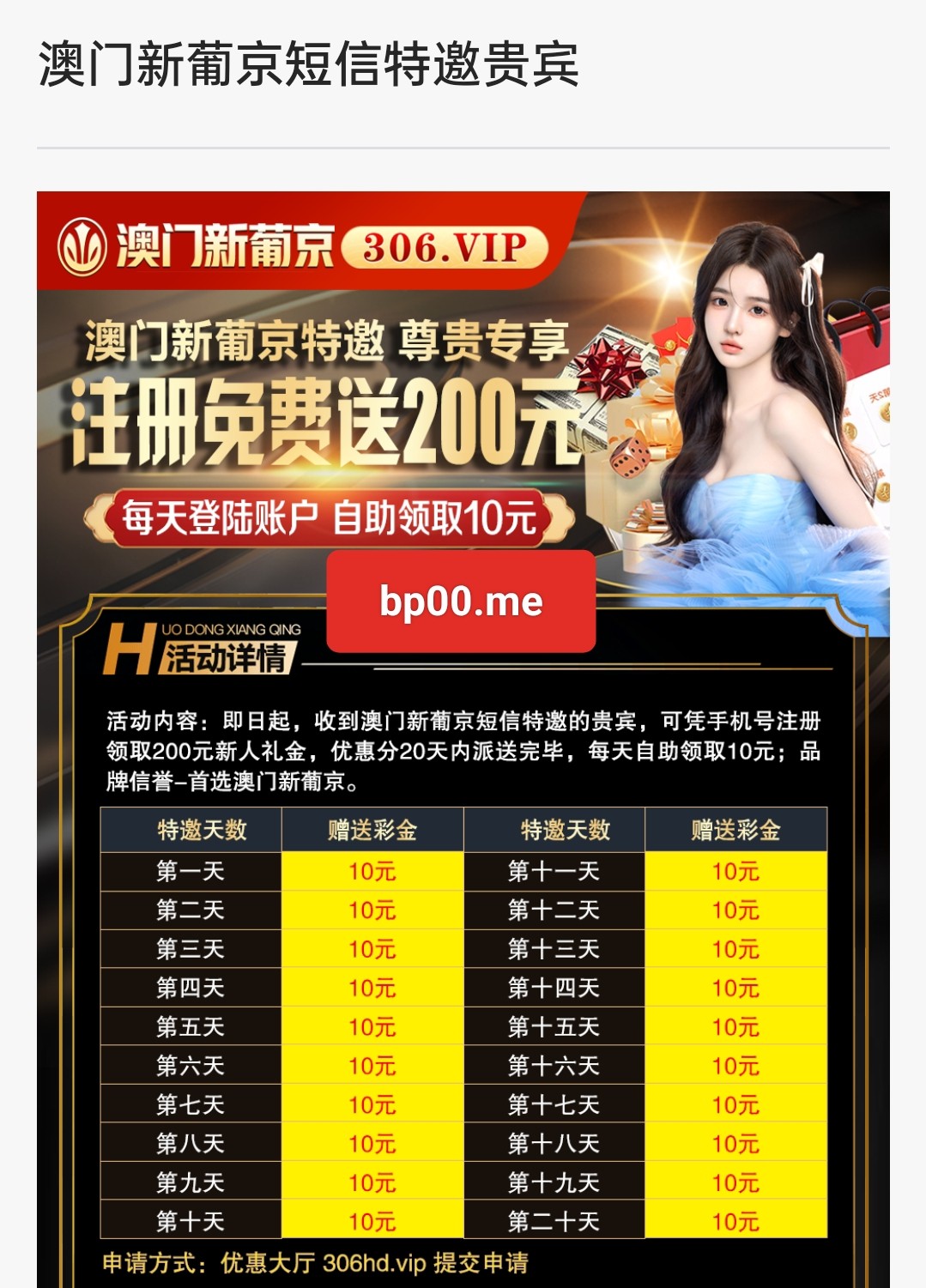 送一天,后面就要充值100才能送了 滚她妈的