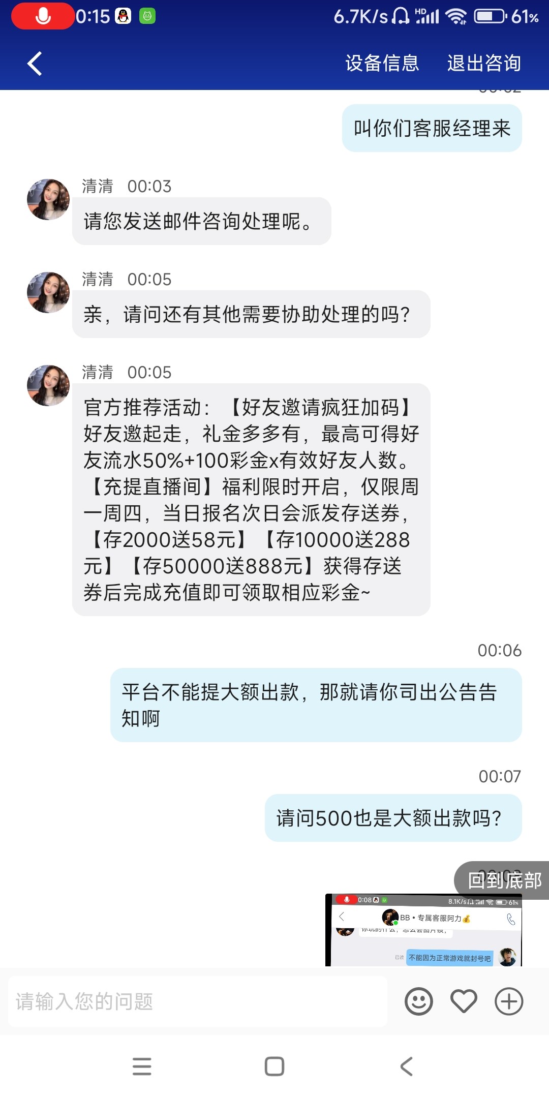 BB体育手持台避坑,VIP3老用户,之前是分批次出款到账,这次第一次直接提500直接封禁,小额能出大额必封台,开香槟