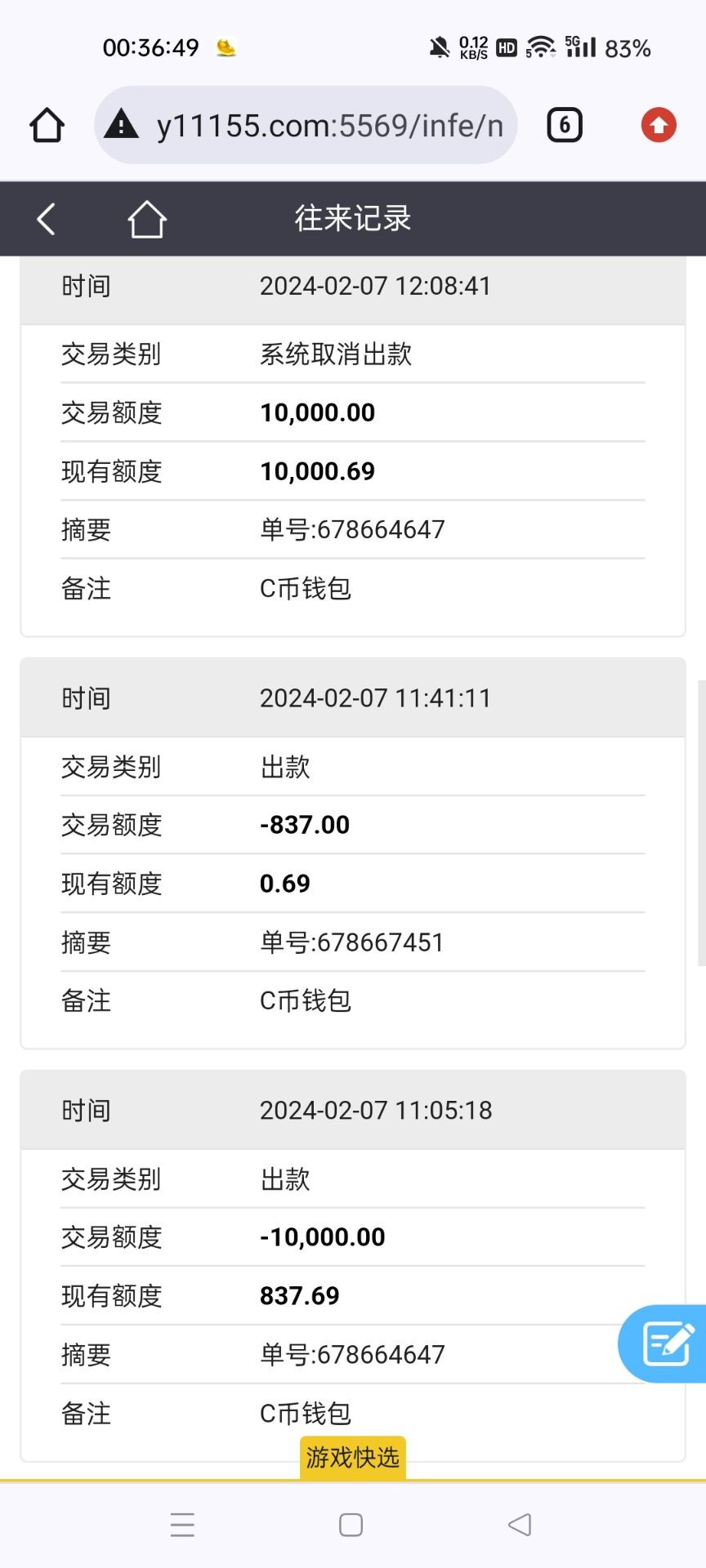 领个周彩金顺手充了500,转了半天几次差点输完刺激得很进免费爆了近四百倍,提现更刺激提心吊胆一个小时就知道黑了,我一个月就冲几次玩的少,你们看着玩吧还是不能贪心,充个一百试试水就行赢多了也出不了像这种不常玩的爆了也会黑退本金也是最后的良知