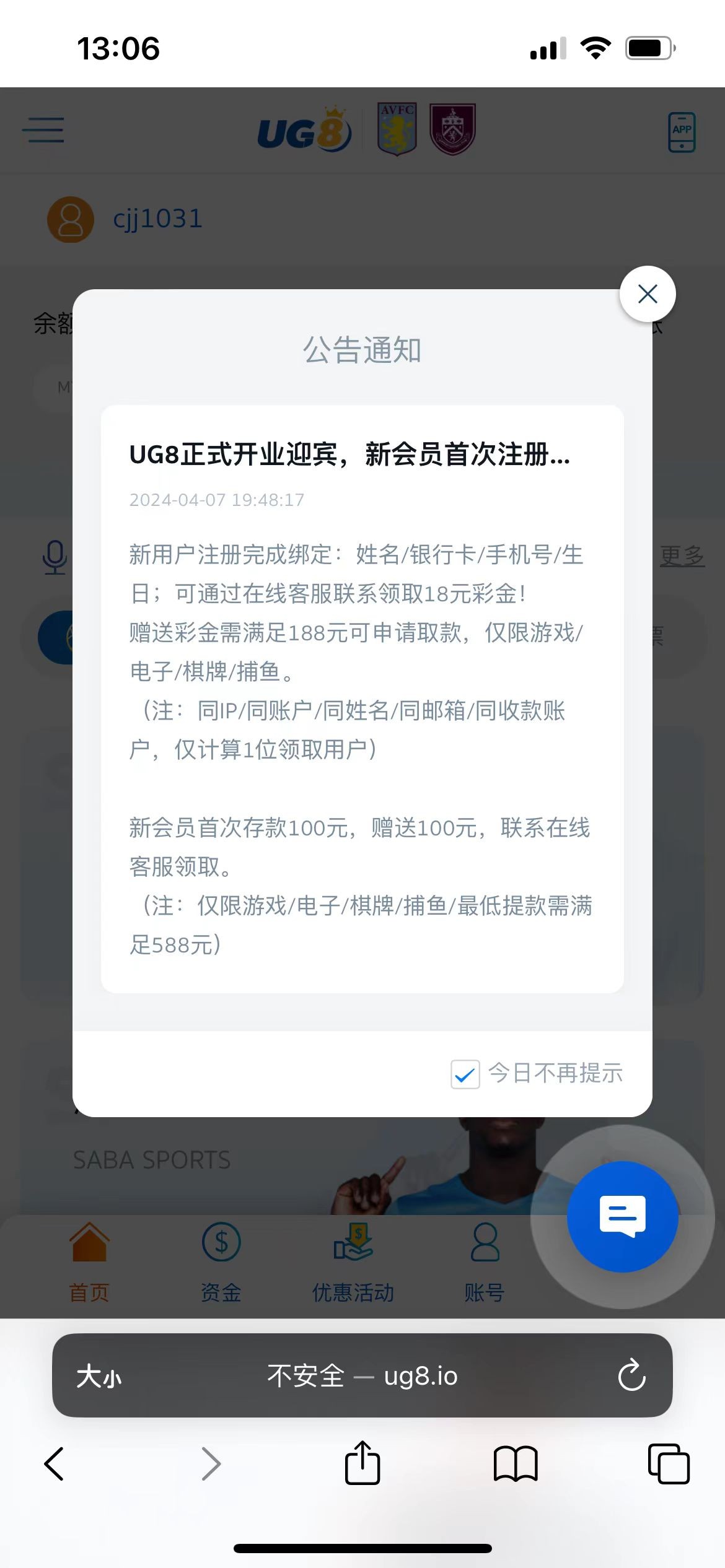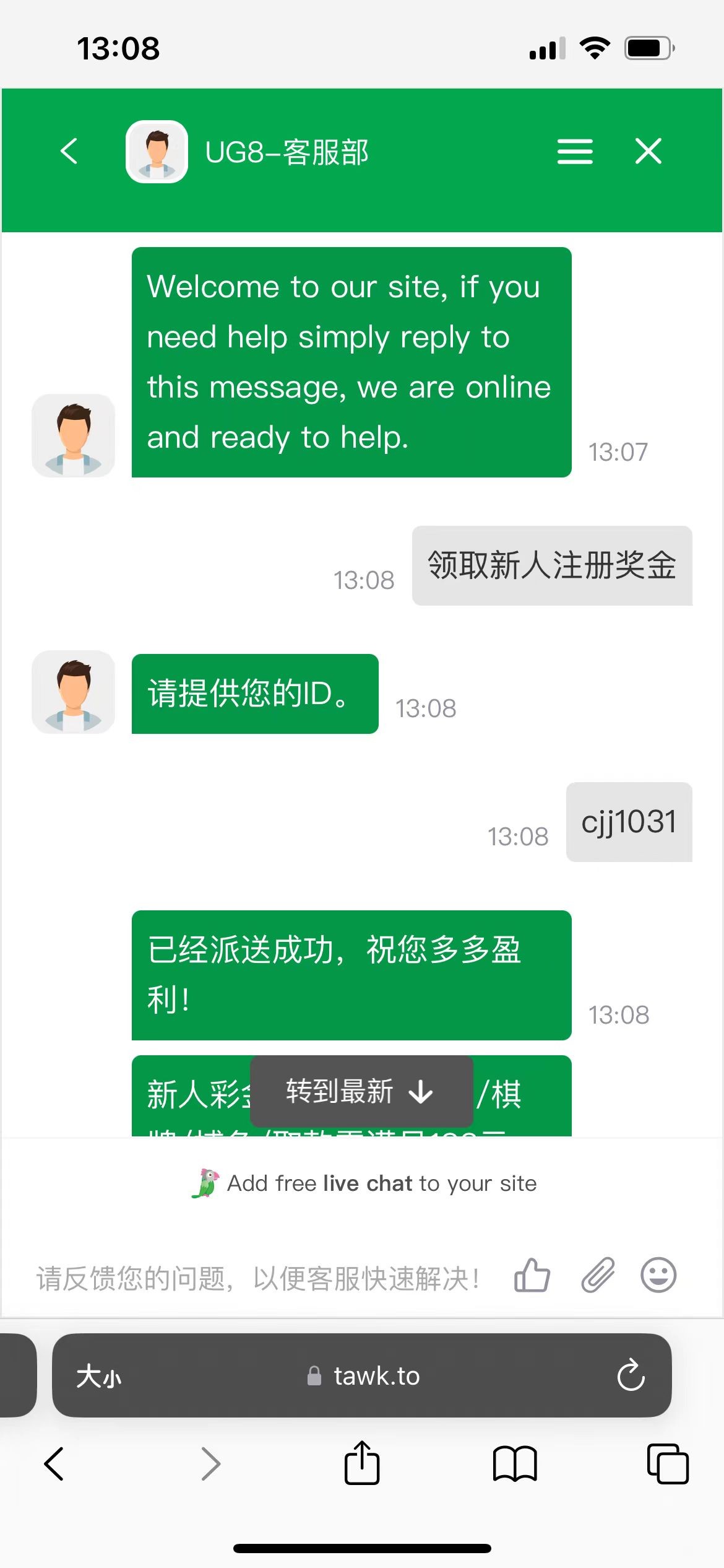 成功再注册账号然后验证手机号领取彩金