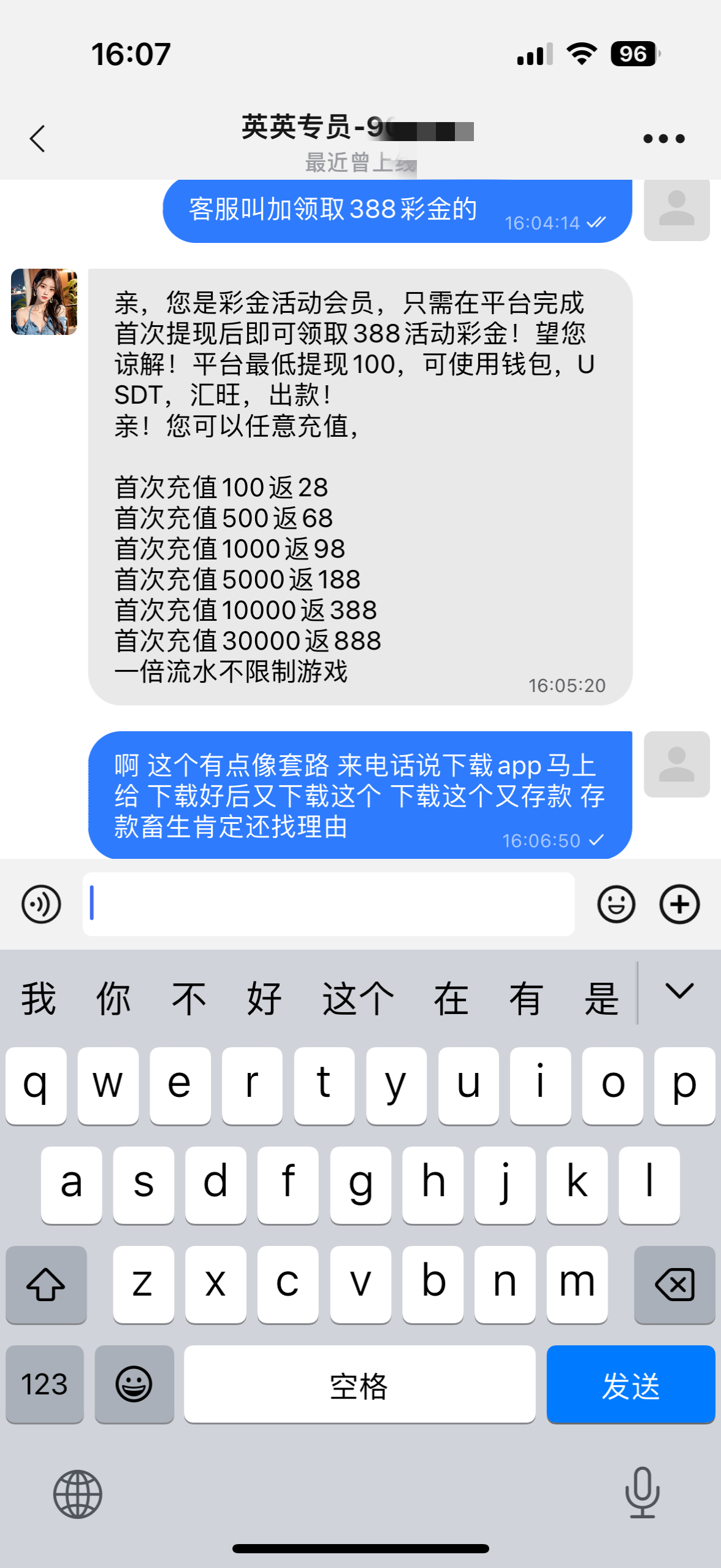 我就上套了 下载这个下载那个最后让我充值我直接问候他妈 不过白嫖的你充值就真的sb了