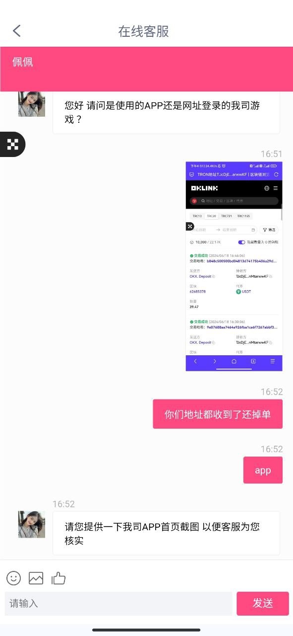 这平台我都VIP2累充不下1万了,用U充值300不到账,找客服给的理由是“掉单”! 用U充值还有掉单的吗,查链都看到地址收到钱了,还让我再冲一笔,两笔一起到账!!!