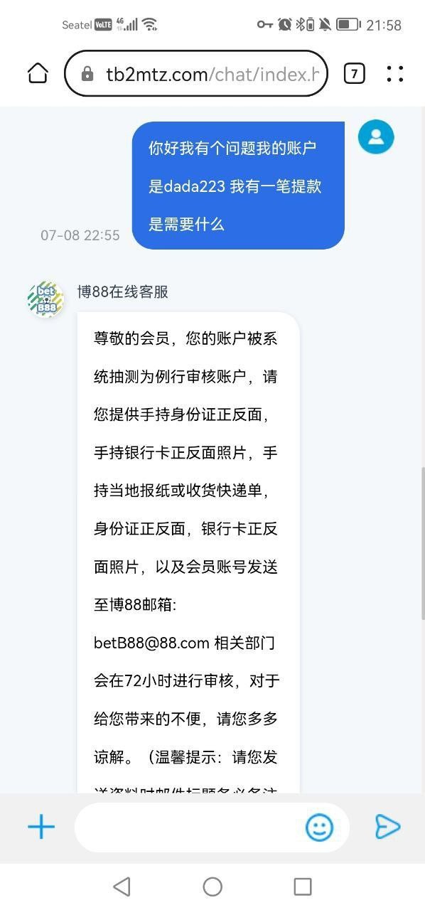 提款的时候说需要我提供报纸快递单我玩之前问他们在东南亚国家能不能玩又说能玩,充值的时候什么都说得好,能玩,不限制,提款的时候,要你提供快递和报纸一些国内才有的东西,问就是不能提供7天内就封号,再问就是请按照要求提供,提供不了就直接7天内封号,根本不回答提供国外没有快递单号和报纸的事情,明摆着就是黑你钱,人在国外的千万不要玩,国内的也想想清楚在玩博88,人家几千都黑你别心存侥幸,黑到你了就是无理由黑