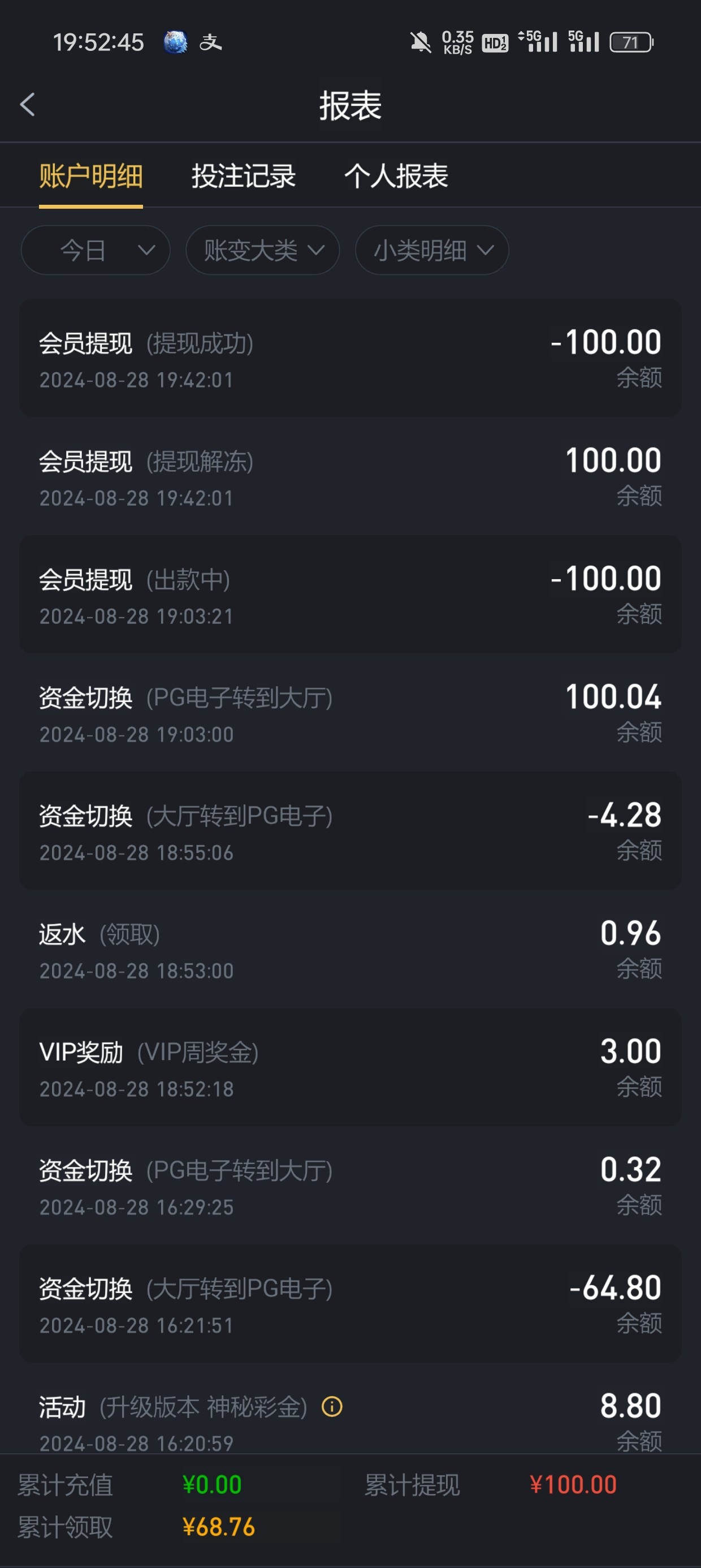 返水出了100,多的不知道