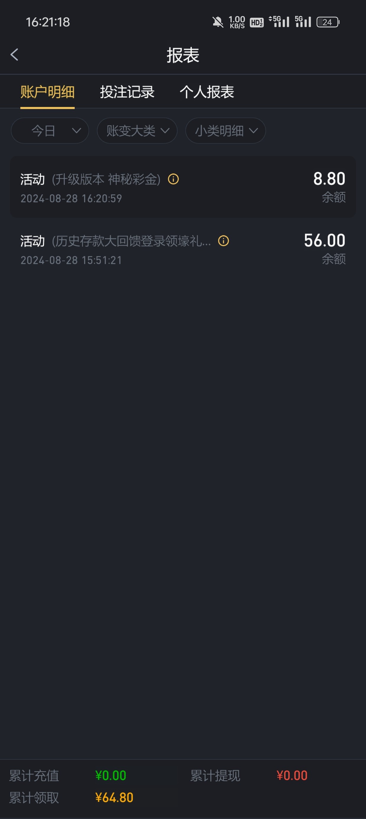 16干到800多 为了能提充100 然后到账了800