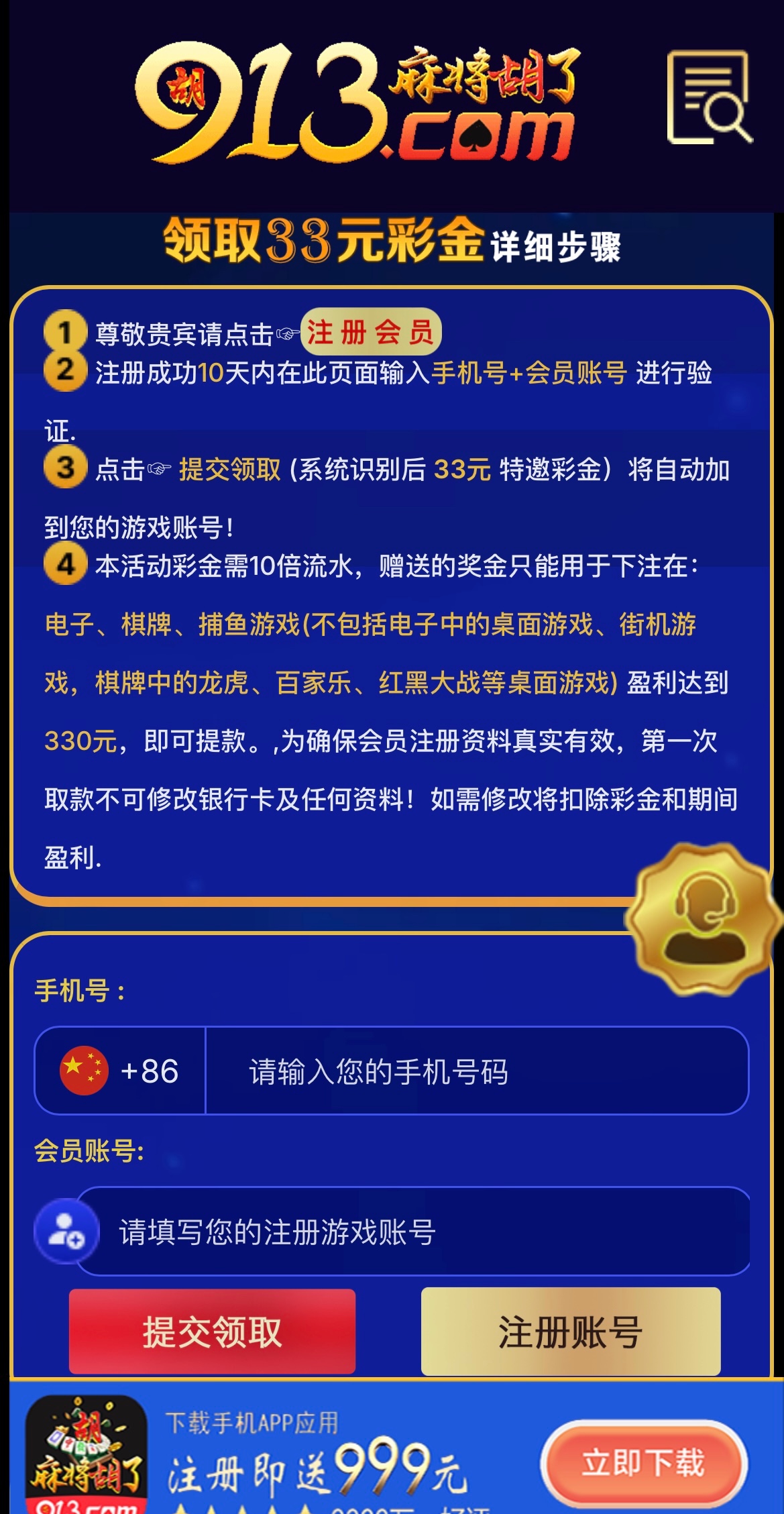 短信特邀碰瓷,注册绑手机号/银行卡,自助申请,彩金10倍流水,限电子/棋牌/捕鱼,要盈利330以上才能提款