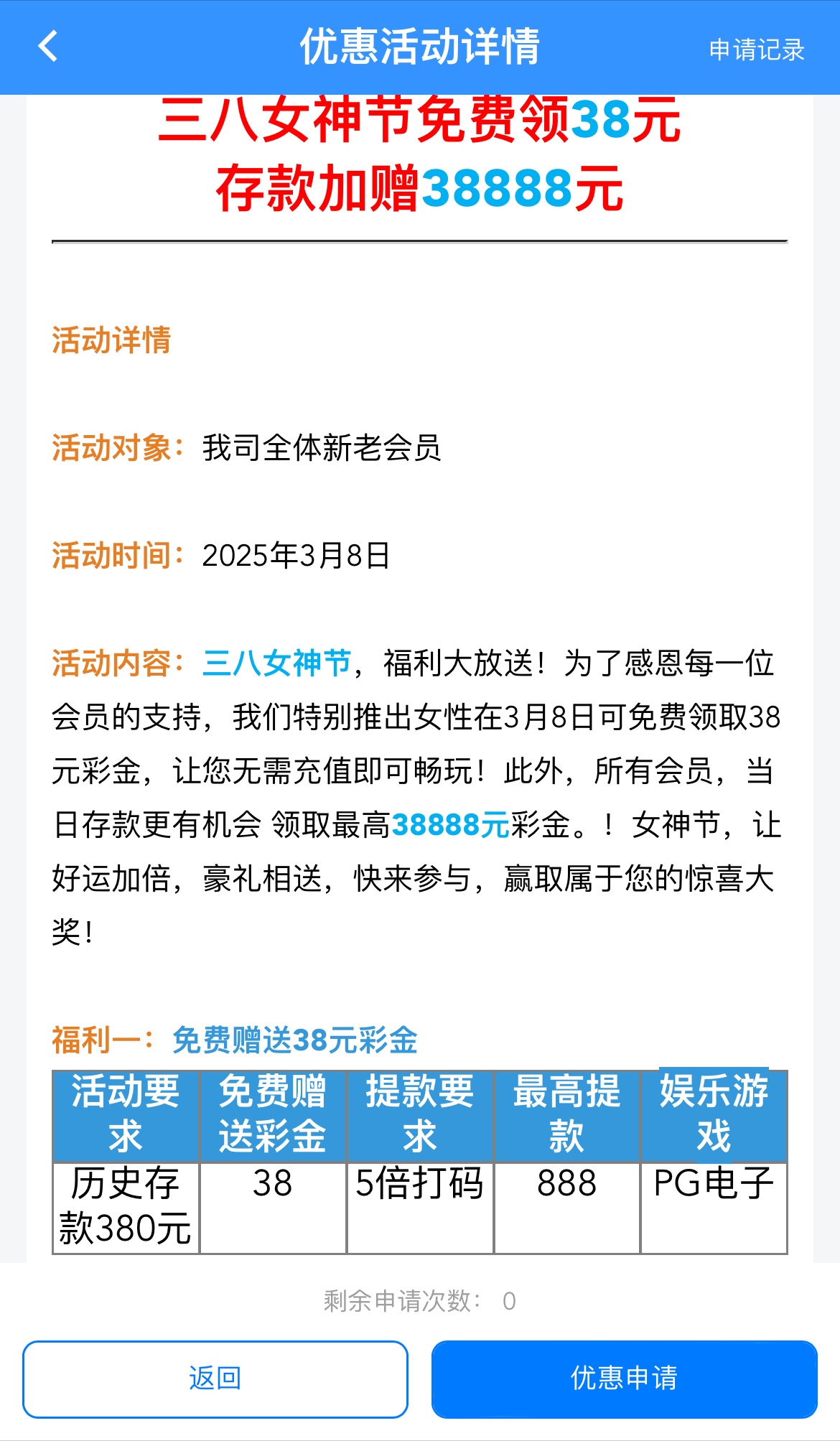 历史存款380以上领38彩金,五倍流水,限PG电子,最高提款888