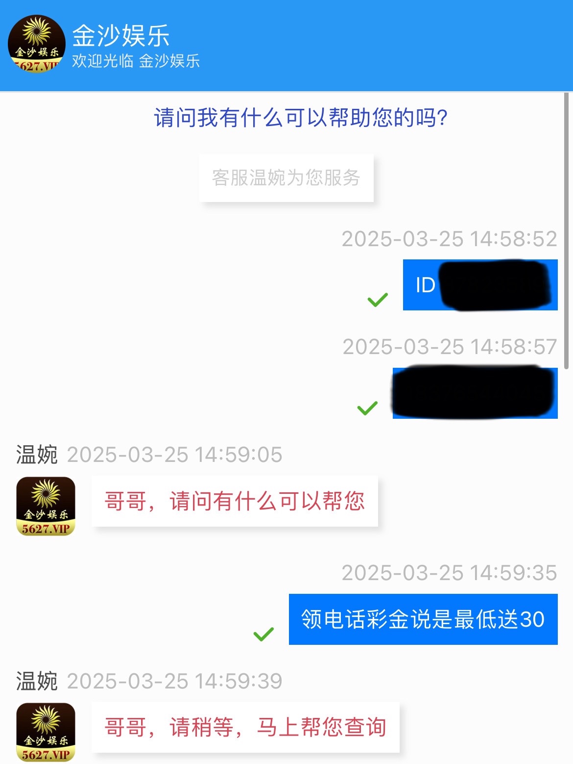 注册复制ID联系客服,发ID和手机号等客服回复说电话彩金换着来,送38彩金,3倍流水,限PG/TY电子,最提现100