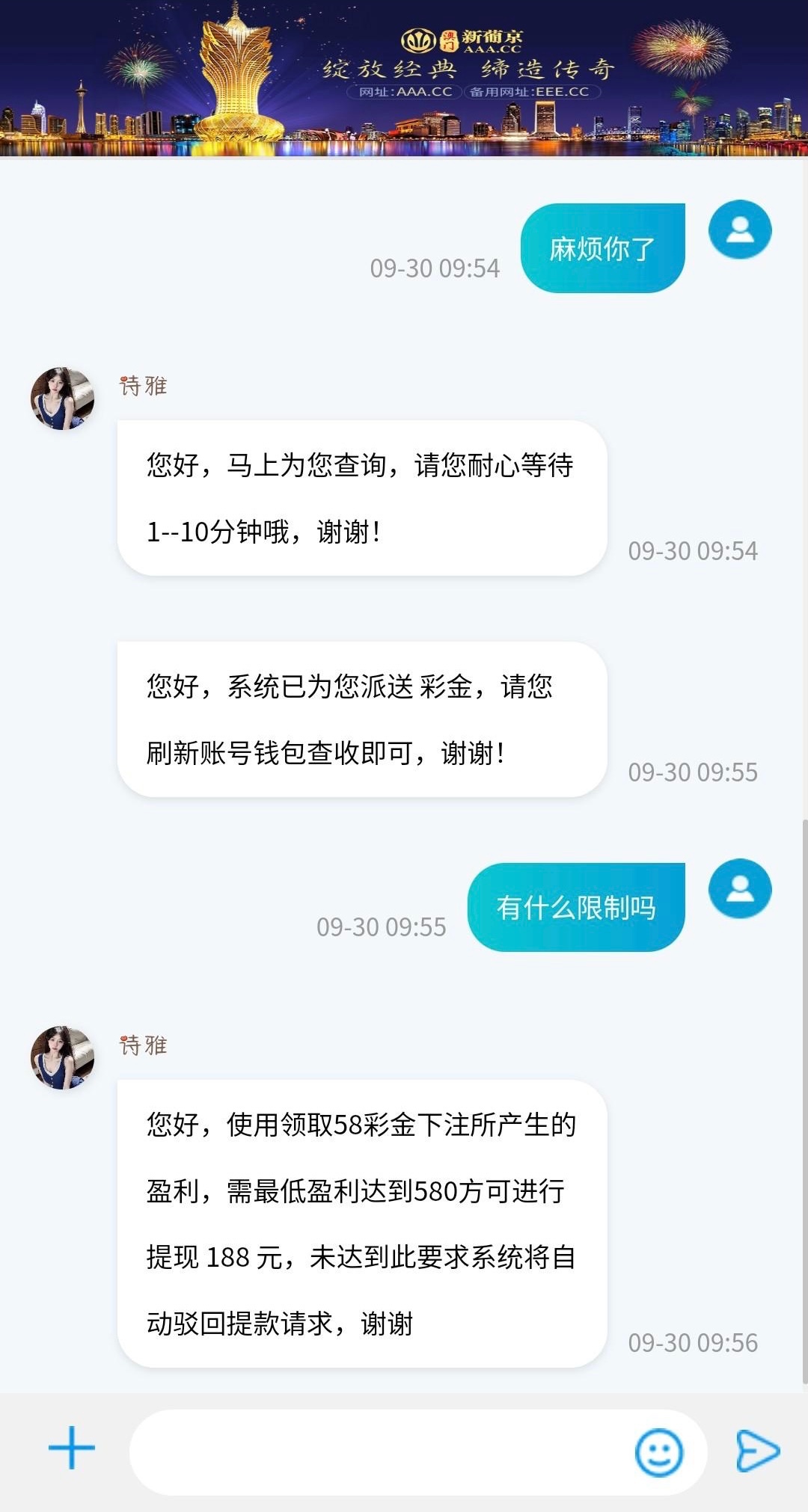 电话特邀碰瓷送580分10天送每天送58,盈利到580可以提现188,感兴趣的兄弟可以去试试