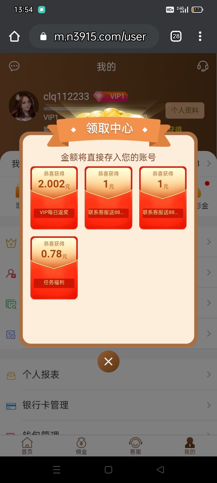 兄弟们每天,系统会送你10元彩金,每天可以去看看帐单。