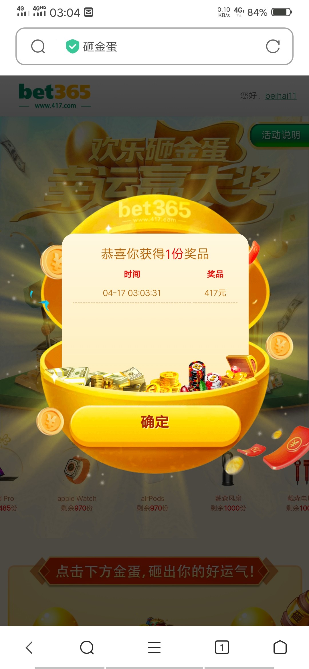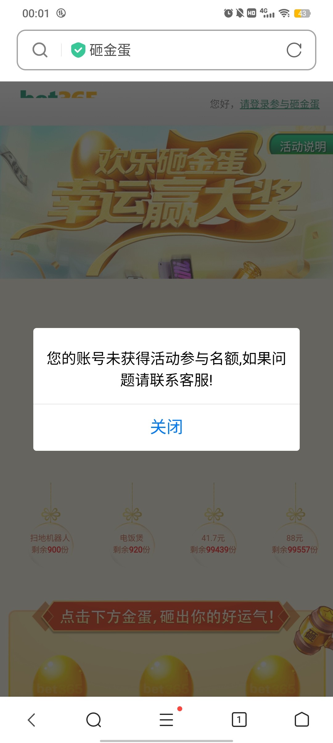 去砸金蛋输用户名看看有没有资格,登陆成功就是可以砸