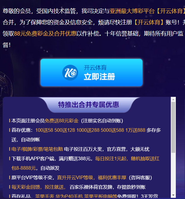 进这个网站注册开元然后实名绑卡 退出来截图网站广告 截图联系在线客服 然后他会让你下载软件 联系 专员 专员核实你是新会员就会送88 切记自己手机下载过开元或者实名过的 必须换手机号和实名