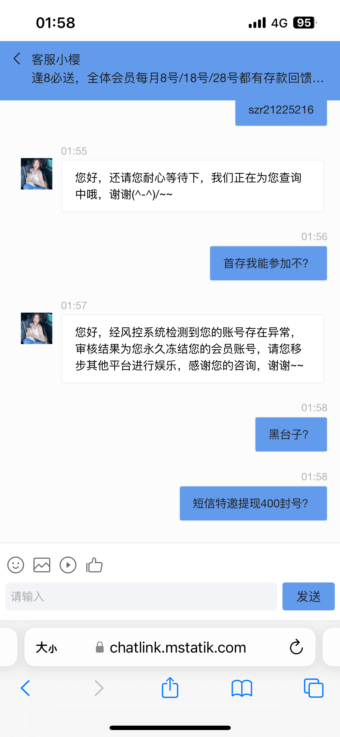 我说的是第二个,直接说系统风控然后检查注单,说我注单违规,然后直接冻结我的号