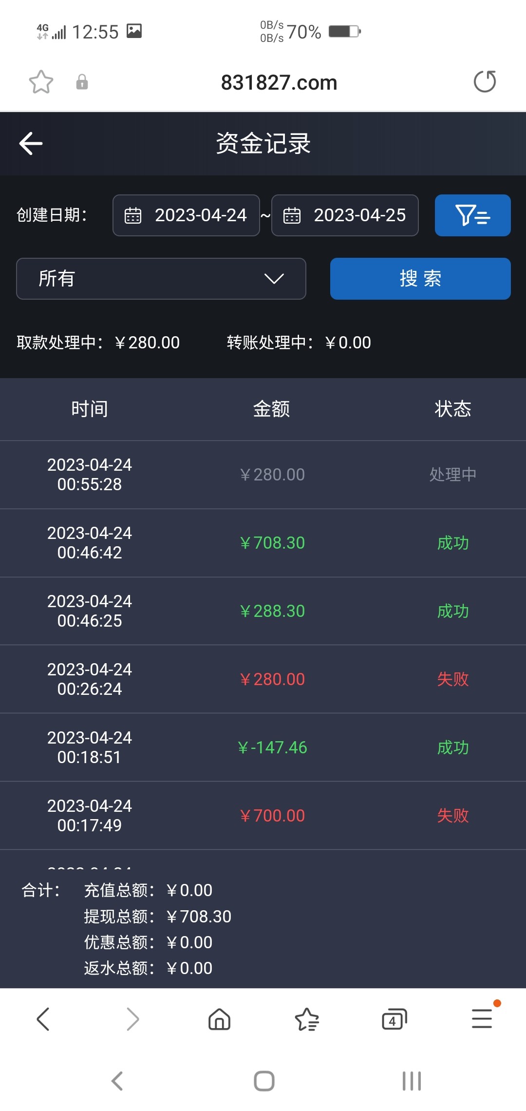 没看规则,最高280,一直爆了800多,提现700失败,然后去问客服,说最高280,提280也失败,然后再去找客服,把剩余的全扣了,剩280让我提,也不知道黑不黑,太亏了