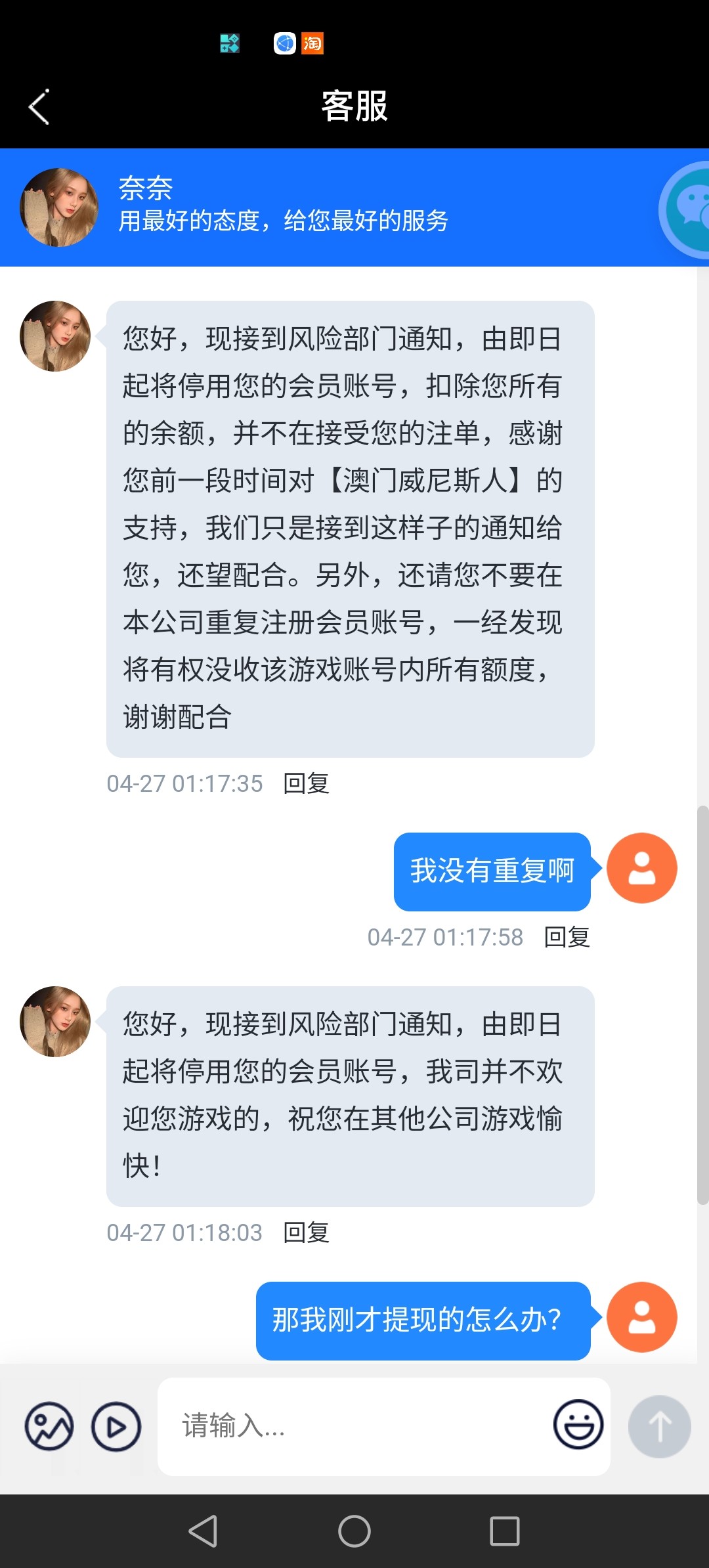 玛德 我在他们这出过4.5次 这次打了3小时 刚出就被封