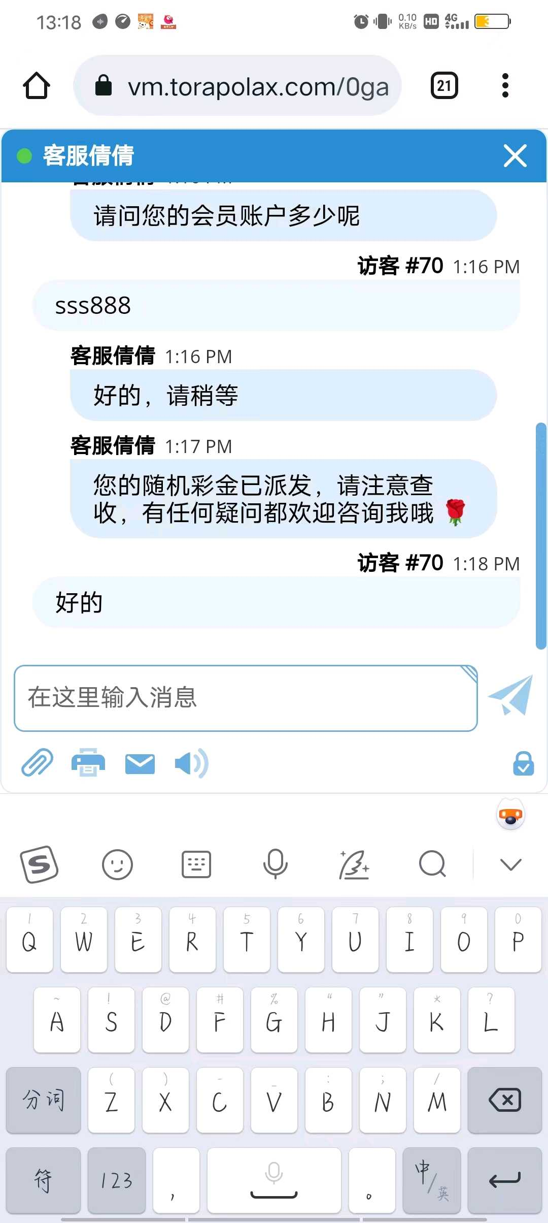 跟客服说收到短信领取288,基本都送,