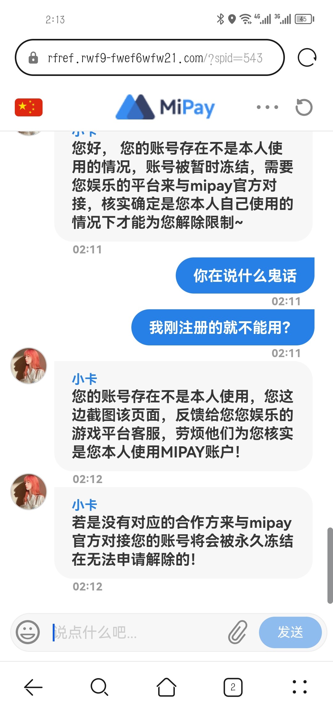 提现叫用mipay,mipay实名后秒封号,叫联系平台,然后又是一顿骚操作。狗庄图啥?骗资料?