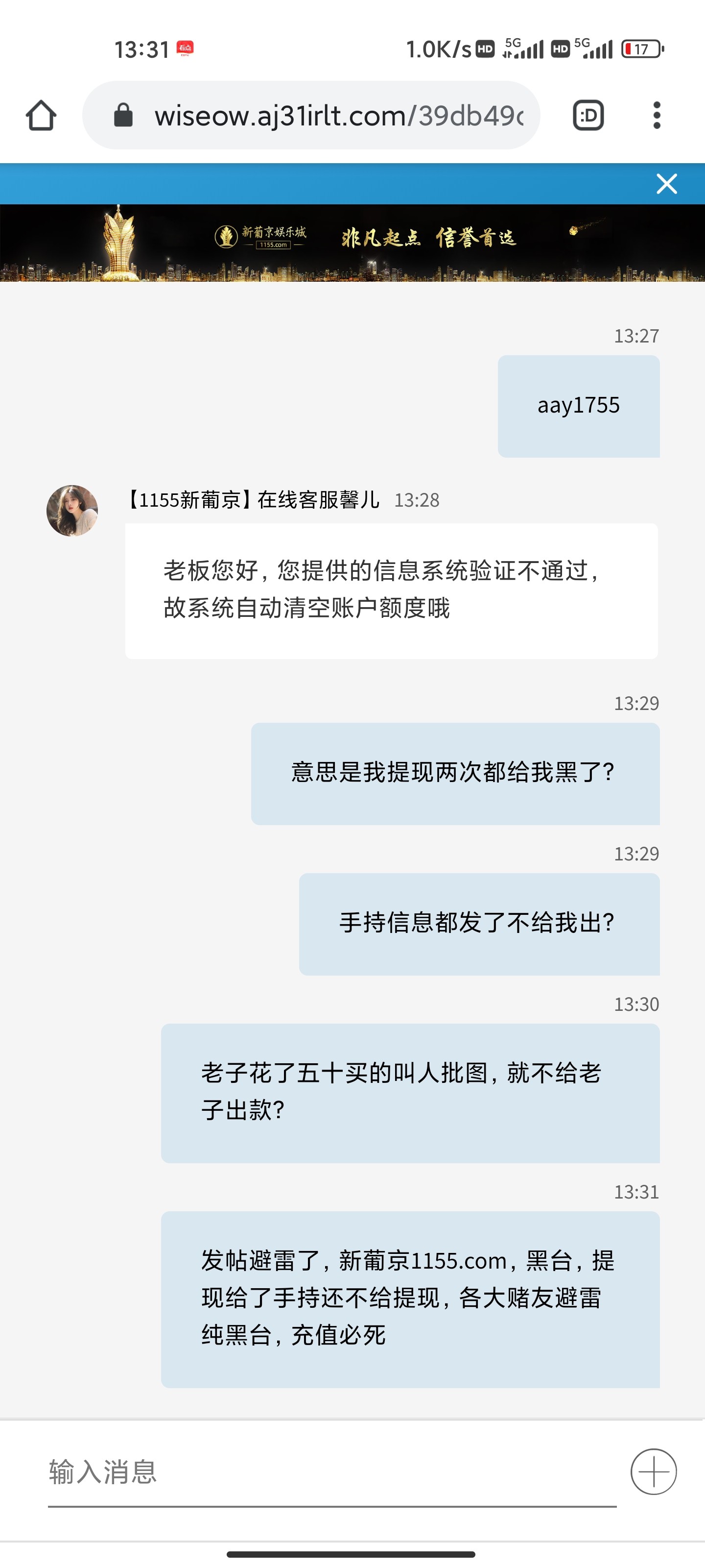 别来硬洗,看聊天截图,我提供了手持信息还是不给出,直接说我审核不通过
