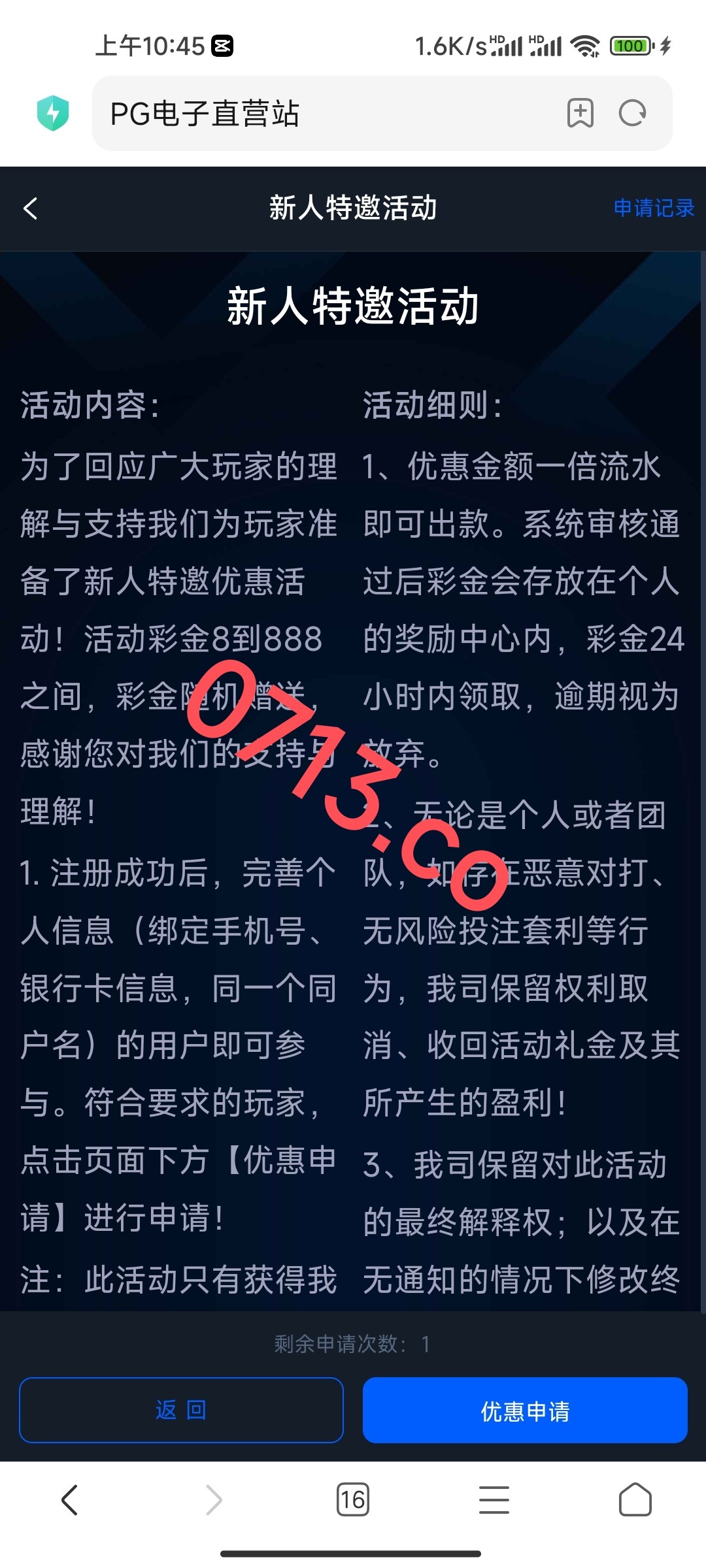 新用户注册绑卡完善信息,活动页面特邀活动自助申请,特邀碰瓷,没碰到等短信即可!