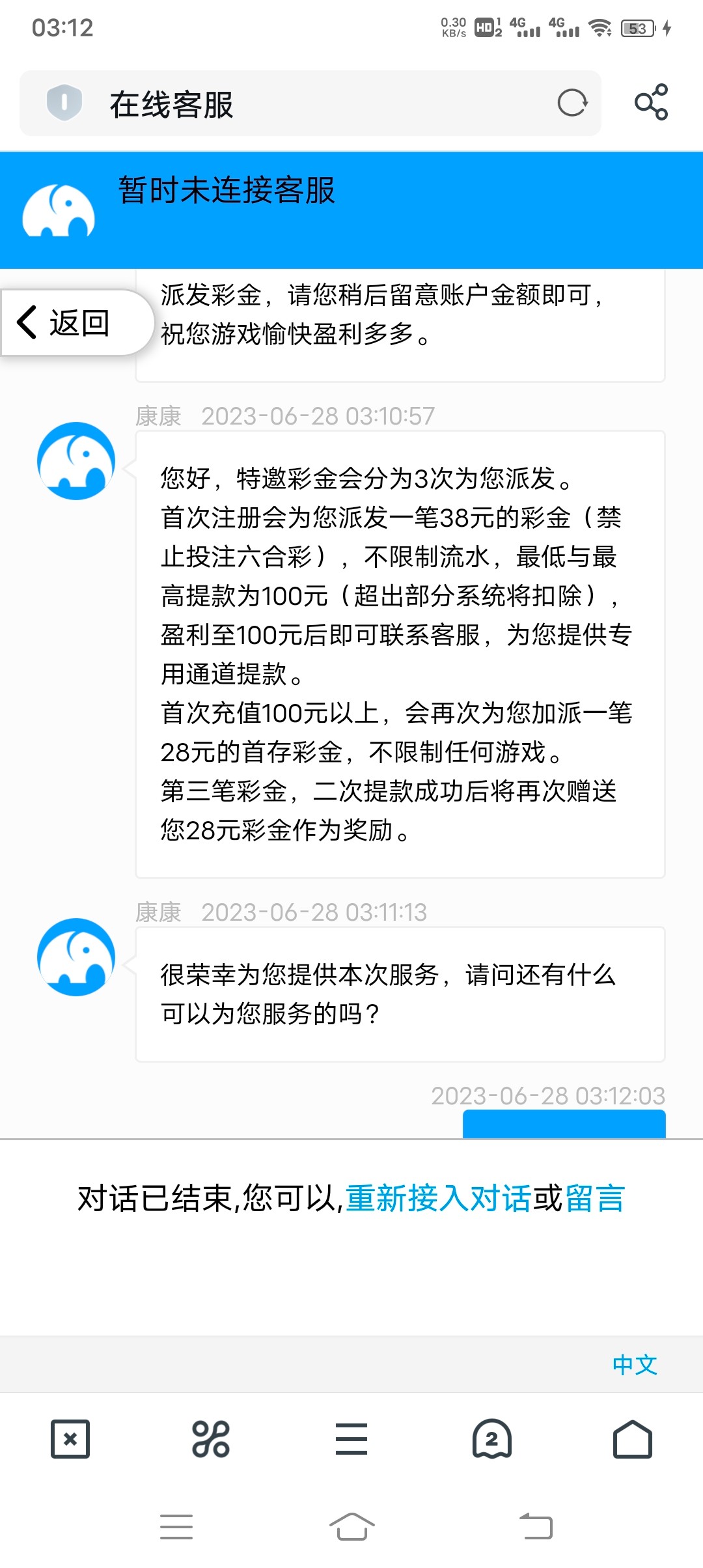 白天看晚上就来短信了白嫖一百。