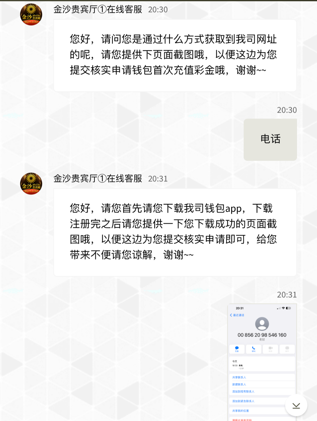 客服问哪里看到的网站 就说电话打的